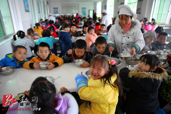 靖州新闻网·红网靖州站1月7日讯(记者 刘杰华) 2016年1月7日,湖南省靖州苗族侗族自治县横江桥小学,学生们在新建的学生食堂里美滋滋地吃营养餐,个个喜笑颜开。作为“十二五”时期一项重要的惠民政策,农村义务教育学生营养改善计划自2012年3月1日在该县启动,每天有18000余名农村学生因此受益,切实改善了农村学生营养状况、提高了农村学生健康水平。