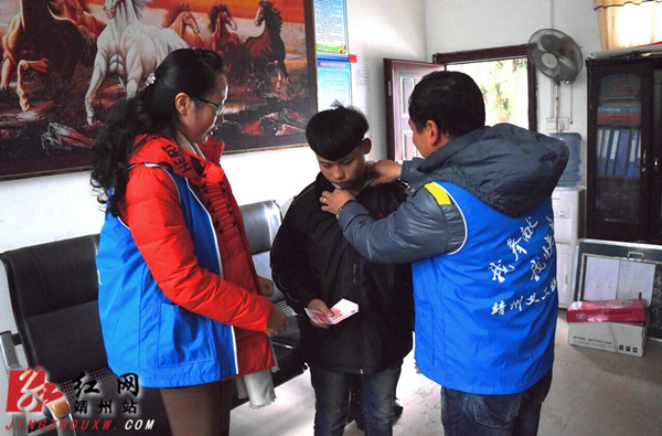 靖州县义工联盟的义工们在核实近300名受助贫困生的入校情况时,发现龙运刚辍学,感到十分担忧,立即赶到寨牙乡龙运刚家中与他进行了交流。随后,义工们与学校进行了联系。学校了解到情况后十分重视,立即给龙运刚办理了入学,龙运刚又回到了学校。