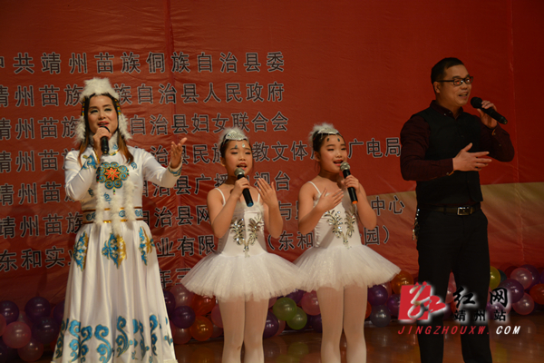 一身苗、侗族服饰的搭配一上台就吸引了大家的目光,这是一对姑姑与侄女的组合,他们用侗族歌曲十苗族歌谣的表现手法演唱了《哆嘎》,歌声曲调优美,受到了大家的欢迎。