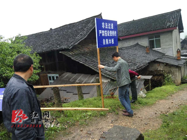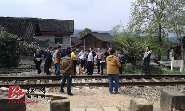 图为靖州县加强对铁路非法道口附近村民的宣传.