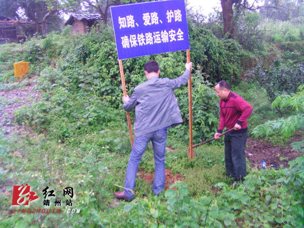 图为靖州县在铁路沿线钉立知路、爱路、护路确保铁路运输安全宣传牌