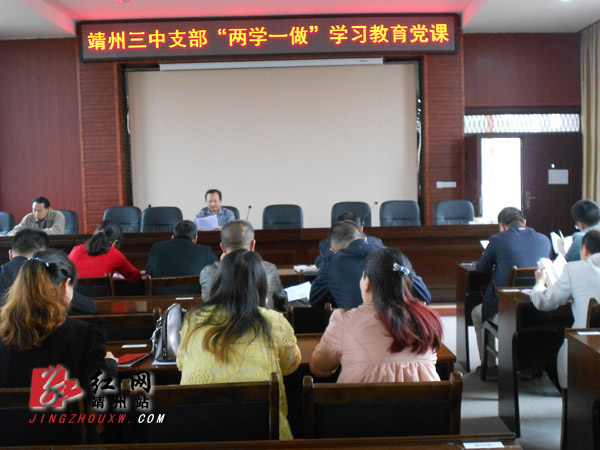 靖州新闻网·红网靖州站5月24日讯(通讯员 马良文 唐海华) 5月24日上午,靖州三中党支部全支部36名党员参加了支部举办的“两学一做”学习教育党课。