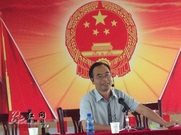 渠阳镇计生协会会长明泽宣在活动现场讲话