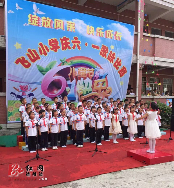 靖州新闻网·红网靖州站5月31日讯(通讯员 龙晓英 禹亚金)“爱祖国,爱人民,鲜艳的红领巾飘扬在前胸。” 5月31日上午,嘹亮的歌曲唱响校园,飞山小学“庆六一”歌咏比赛活动正在进行中。