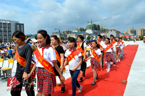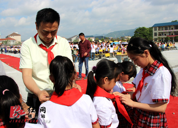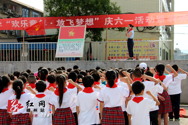 新队员入队仪式上,三至六年级365名同学光荣加入中国少先队。校长周海向全校小朋友致以诚挚的问候,祝愿小朋友们节日快乐,健康成长。在最引人瞩目、激动人心的星级学生表彰环节,获得该校四星级荣誉证书的各年级同学在小礼仪的带领下,分组走上主席台领奖。获得该校最高荣誉五星级荣誉证书的32名学生在家长陪同下,经过红地毯走上主席台,在现场数千师生的注目下,接受自己获得的荣誉和奖励。大会还对在四月底全县第35届中小学生运动会上荣获团体一等奖的优秀运动员进行了表彰