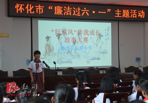 靖州新闻网·红网靖州站6月2日讯(通讯员 吴顺全 余水) “一粥一饭,当思来之不易;半丝半缕,恒念物力维艰”5月31日上午,靖州乐群小学认真贯彻落实怀化市“廉洁过六一”的要求,在该校会议室举行了“好家风伴我成长”故事大赛,五年级3班的陈奕潼等选手上台抒发自己的感想。