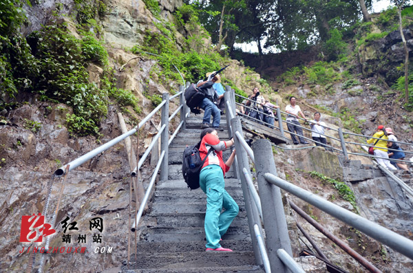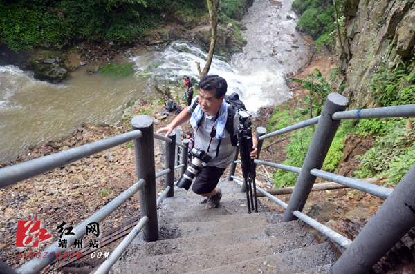 为了拍摄到理想的风景,摄影师不畏地势险要。 覃太培 摄