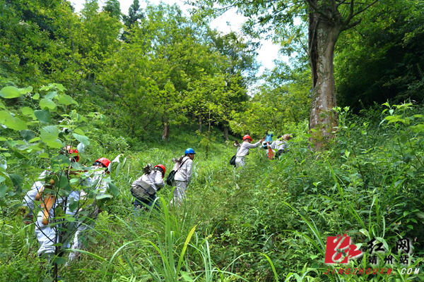 电力工人背负沉重设备在荆棘中穿行。 石云昌 摄