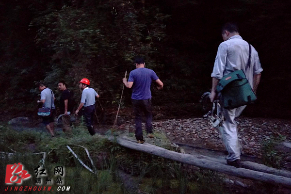 终于完成抢修,电力工人在夜色中返回。 石云昌 摄