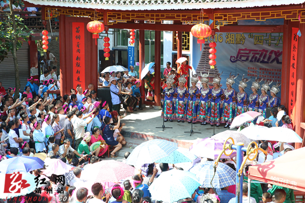 靖州新闻网·红网靖州站8月17日讯(分站记者 刘杰华 何嫘 通讯员 张绪高) 8月16日,农历七月十四,湖南省靖州苗族侗族县大堡子镇岩湾村,一年一度的“四十八寨赶歌场”如期而至,来自湘黔边界48寨的数千名苗侗同胞身着盛装,齐聚岩湾歌场,以歌会友,以歌传情,唱响“百年岩湾歌场”。一时间,山坡上、公路旁人山人海,歌场上歌声此起彼伏、遥相呼应,真可谓“歌手云集千首少,放歌没得办法收”。