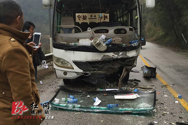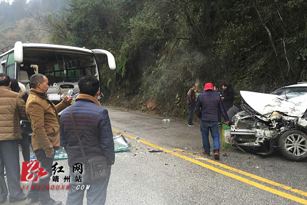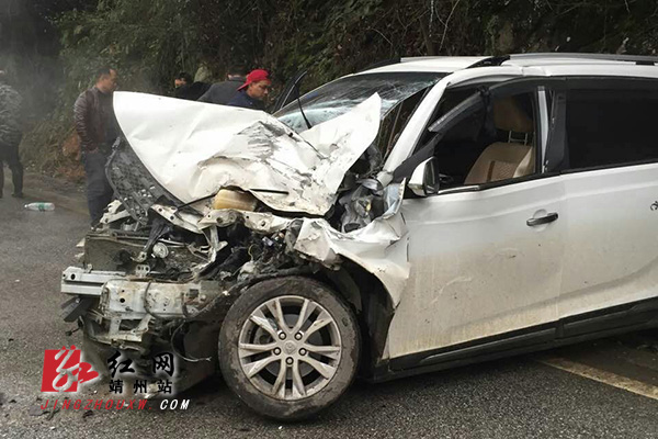 靖州新闻网·红网靖州站讯(通讯员 彭海) 1月10日下午,在靖州县城到寨牙乡路段发生一起车祸。一辆宝骏牌汽车与一辆靖州至绥宁班车相撞,两车损坏严重,所幸没有重大人员伤亡,几位乘客受了点轻伤。春运在即,路上车流量增大,希望广大司机朋友安全出行。