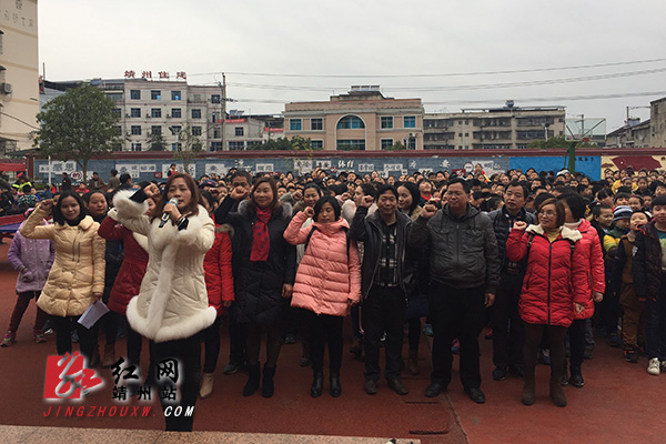 靖州新闻网·红网靖州站讯(通讯员 禹亚金) 2月24日下午,飞山小学六年级全体师生在学校篮球场参加了2017年六年级师生动员大会。