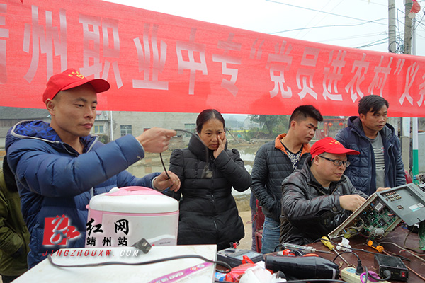 3月7日,为了弘扬雷锋精神、践行精准扶贫策略,靖州职中组织电子电器和形象设计专业的党员、团员师生25人,到该校扶贫联系村渠阳镇夏乡村开展开展“党员进村、技能帮困”专题活动。根据广大村民的困难需求,党员教师充分发挥自己的专业技能,带领学生着重开展维修家电、理发和保健按摩活动。当日下午、部分教师的结对帮扶对象和闻讯而来的村民围满活动现场,纷纷请求帮助修理、享受巧手艺。孙克佳是电子电器专业骨干党员教师,2016年参加全市“十行百优。五溪工匠”钳工、焊工、维修电工三类技能大赛,荣获维修电工类第一名,并且由此成为全市三个“五一劳动奖章”获得者之一。在现场,孙老师和他的团队,凭借精巧的技艺,快速修好电视机4台,洗衣机3台及20余件小家电。