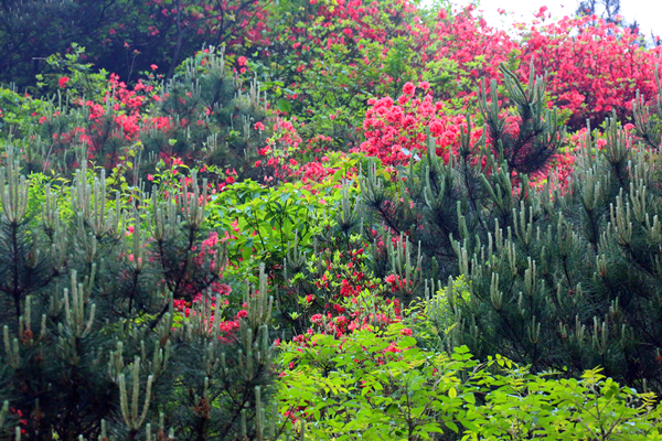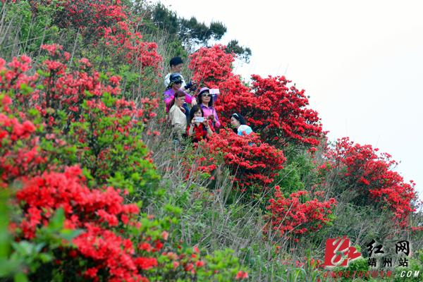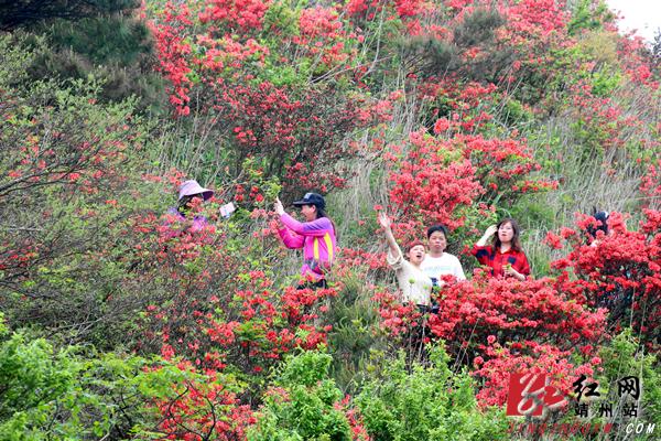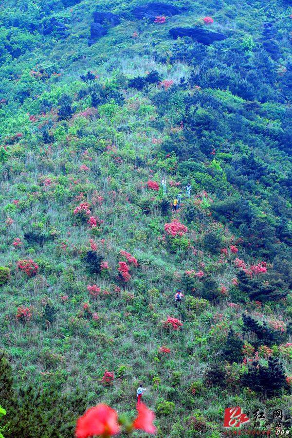 杜鹃花漫山遍岭竞相开放,户外运动爱好者纷至沓来。 刘杰华 摄