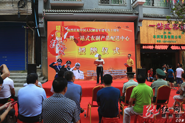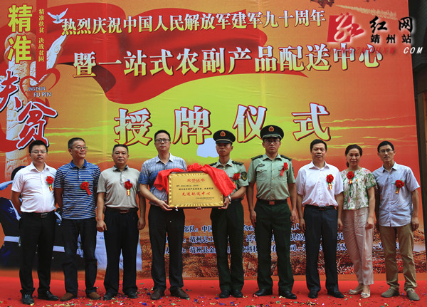 7月28日上午,驻靖部队精准扶贫一站式农副产品配送中心授牌仪式举行。 何嫘 摄