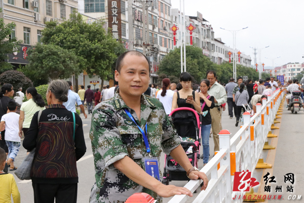 当演出方阵和花车经过后,警戒解除,一名在马路中间执勤完毕的的民兵请求记者给他拍照留影,看得出,虽然辛苦了但心情还是非常不错的,正好这也就成了记者的第一个目标。“这次县庆真的很热闹,最让我高兴的是我很荣幸的为30周年县庆做了一点点小奉献。”民兵杨军自豪的说道,今天他还看到好多出去很久的老乡都从各地赶回来看县庆,而且有的是连过年都很少回来的朋友。以后有机会我还要参加,他最后表示。