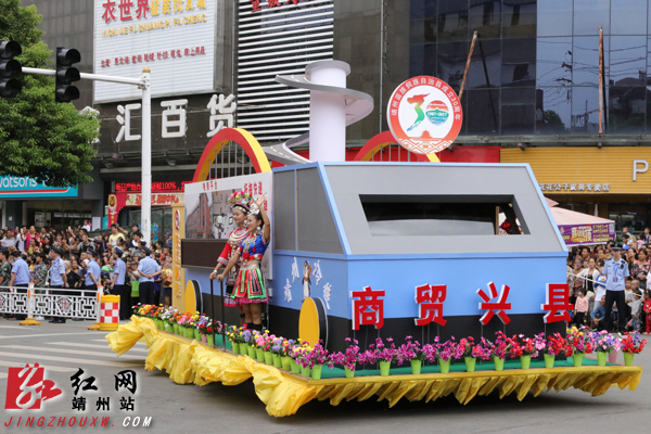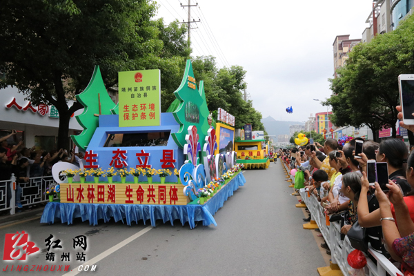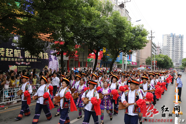 靖州新闻网 • 红网靖州站(实习记者 易子明) 9月22日中午,随着一阵喜庆热烈的锣鼓声,靖州苗族侗族自治县30周年县庆的7个群众文化演出方阵和五辆花车组成的文化表演队伍,从永平路旁的再思公园出发,途经飞山西路、渠阳中路和新建中路,再到梅林路财政局前结束。