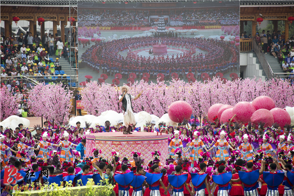 “30”的字样,象征着三十周年的靖州苗族侗族自治县吉祥如意、生机勃发。 何嫘 摄