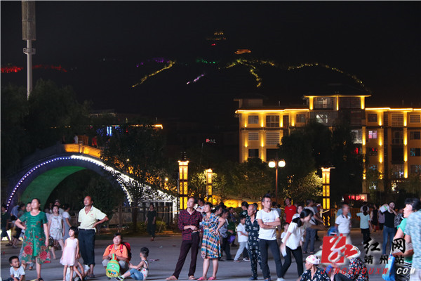 靖州新闻网 • 红网靖州站(实习记者 易子明) 9月21日晚,距22日靖州苗族侗族自治县30周年县庆仅剩12个小时,在飞山民族广场,众多市民群众聚集在广场的大型电子屏前,观看正在播放的《苗侗福地 美丽靖州》、《爱你 靖州》等县庆宣传片而久久不愿离去,大屏幕中不断涌出的那些风光旖旎的自然景观及焕然一新的城市面貌,还有珍贵的苗族歌鼟、雕花蜜饯等传统文化艺术,都让身为一个靖州人而感到骄傲和自豪。