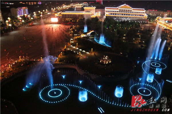 高处鸟瞰夜幕中的飞山民族广场 易子明 摄