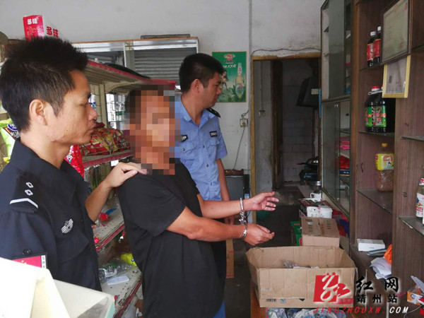 9月28日凌晨4点,靖州县公安局渠阳派出所接到群众报警称疑似有人在河街某商店内实施盗窃。民警迅速赶到现场,报警群众在案发附近进行观察,民警对现场进行初步勘查,发现河街某商店卷闸门有损坏撬动的痕迹,店内灯火通明,这样的情况比较反常,民警凭借经验基本判断店内有发生盗窃的可能,民警当即表明身份,朝商店内进行喊话,过了几分钟没有任何动静,于是多方联系到受害人将商店卷闸门打开,布置警力把守商店的出入口,对商店进行巡查,发现商店内一片凌乱,但是不见盗贼踪影。民警凭借敏锐的觉察力发现厕所有异响,于是果断将厕所门一推,只见一名男子穿着拖鞋狼狈的蹲在墙角哆嗦,民警大声一呵,盗贼慌乱中将手上捧着的一堆品牌香烟丢在地上,束手就擒。