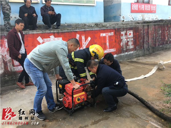 在培训活动中,县消防队工作人员就消防泵的正确使用方法、消防泵的日常保养和维护进行了培训。为让各村消防员更客观的进行学习,县消防队工作人员协同艮山口便民服务中心工作人员对消防泵的使用进行了现场示范。