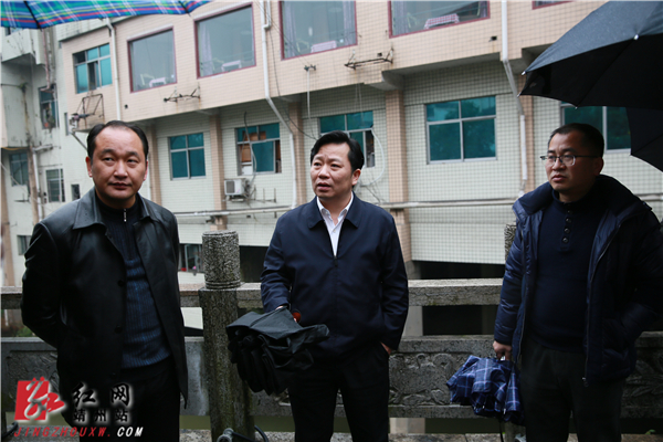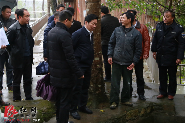县委副书记、县长、县河长田连钊一行冒雨前往异溪河源头,查看水质情况 邹家旺 摄