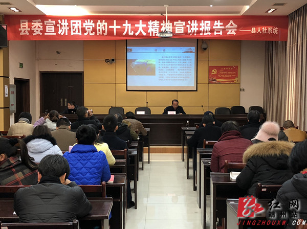 靖州新闻网·红网靖州站12月15日讯(通讯员 段琼)12月14日下午,靖州县人力资源社会保障局组织召开十九大精神宣讲报告会,邀请了县委宣讲团成员、县宣传部副部长李静平到会宣讲,县人社局党组书记、局长丁红主持会议,人社系统全体干部职工参加报告会。