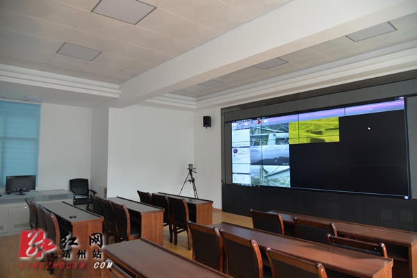 位于靖州县森林防火指挥部里的森林防火监控指挥中心对林区重点部位进行实时监控。