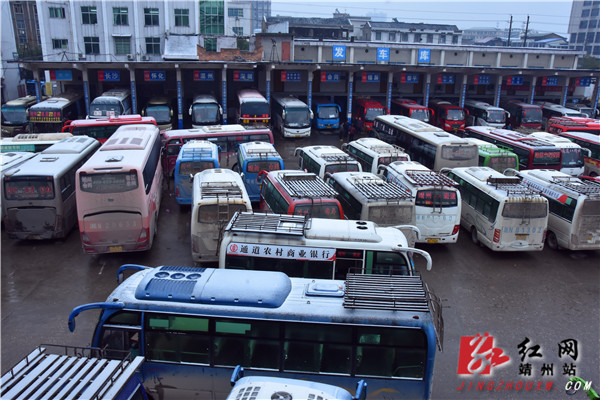 靖州新闻网•红网靖州站1月26日讯(分站记者 易子明)1月26日上午,受冰冻雨雪天气影响,靖州汽车站发往省内外的41条线路的400个客运班次全部停运, 70 余台客运班车停留在车站内。同时,车站准备了火盆和热水,有效做好滞留旅客的应对措施,购买今日车票的旅客也已经在售票窗口进行改班或者退票。
