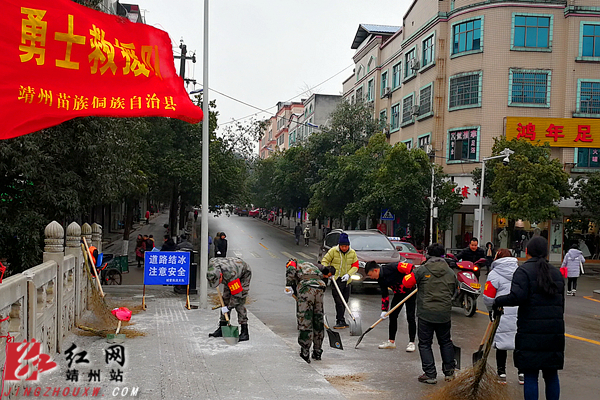 靖州新闻网·红网靖州站2月1日讯 (分站记者 刘杰华 通讯员 胡宗胜)1月27-30日,靖州苗族侗族自治县,一支身着迷彩服,佩戴“勇士救援队”臂章的“特殊部队”连续出现在县城风雨桥、诚州桥、梅林路大桥,搀扶跌倒行人、清除桥面冰冻,赢得了市民赞誉。