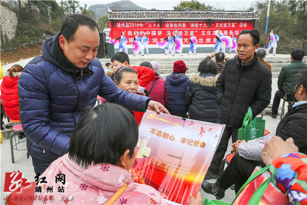 不忘初心 牢记使命 工作人员在活动中为村民送上宣传十九大精神的挂历 易子明 摄