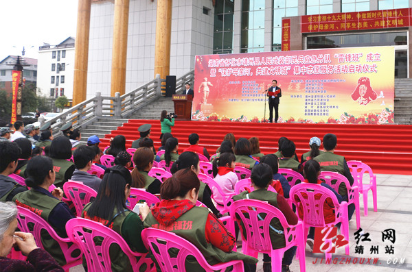 靖州新闻网·红网靖州站3月2日讯(分站记者 周悦伊)3月1日,春风和煦,飞山民族文化广场上奏响《学习雷锋好榜样》,新剧院前整齐的方队及所有人全体起立奏歌。伴随着悠扬的歌声,靖州“雷锋班”班长李旭带领全班成员向“班旗”宣誓成立。同时,“保护母亲河,共建文明城”集中志愿服务活动正式启动。