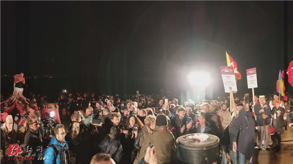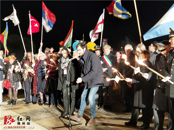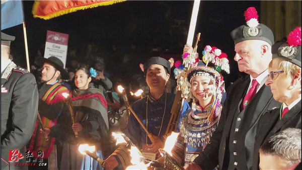 意大利阿格里真托市长与中国靖州苗族歌鼟代表团团长林华共同点燃火炬