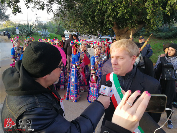 意大利阿格里真托市长接受媒体记者采访时说:中国能派出民族特色浓郁的表演队来参加非遗展演活动,他很高兴。并表示感谢!