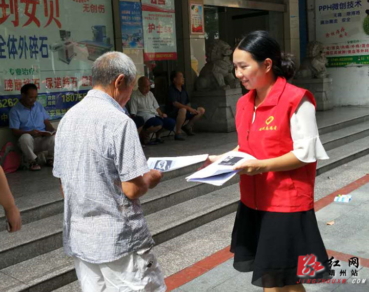沿街发放禁毒宣传资料,普及禁毒知识。 秦明 摄