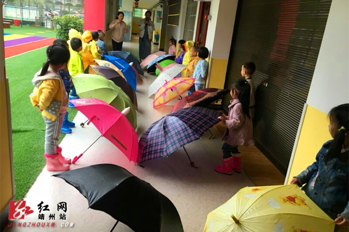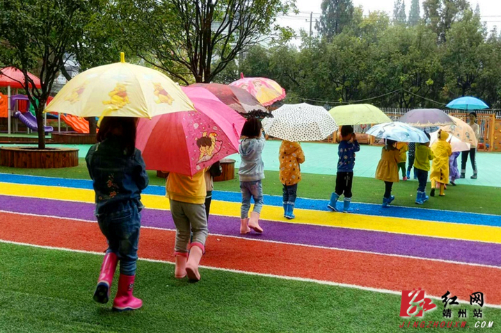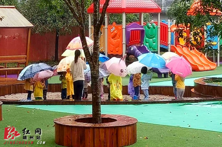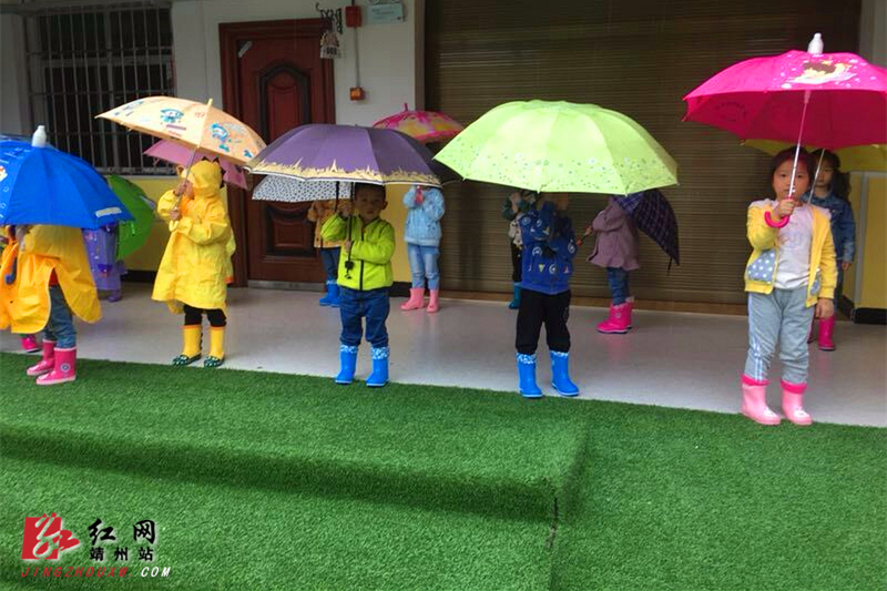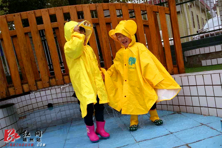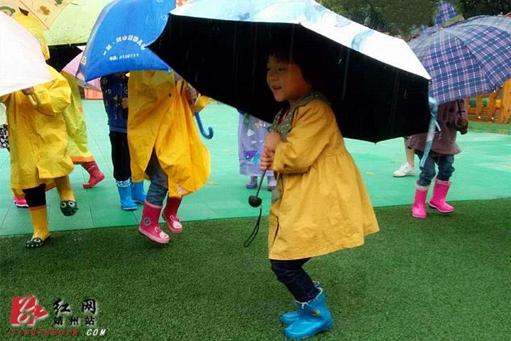 靖州新闻网·红网靖州站10月10日讯( 分站记者 刘杰华 通讯员 易爱苹)“我是小猪佩奇,下雨天我最喜欢的事,就是在泥坑里跳来跳去……”10月9日上午10点钟,又到了孩子们喜欢的户外活动时间了,可是,雨从早上到现在都没有停过。难道因为下雨就不户外活动了吗?不!瞧,靖州县幼儿园新园走二班的小朋友们在老师的组织下,正享受着雨天呢。