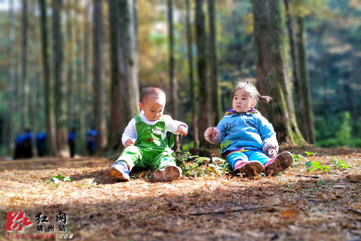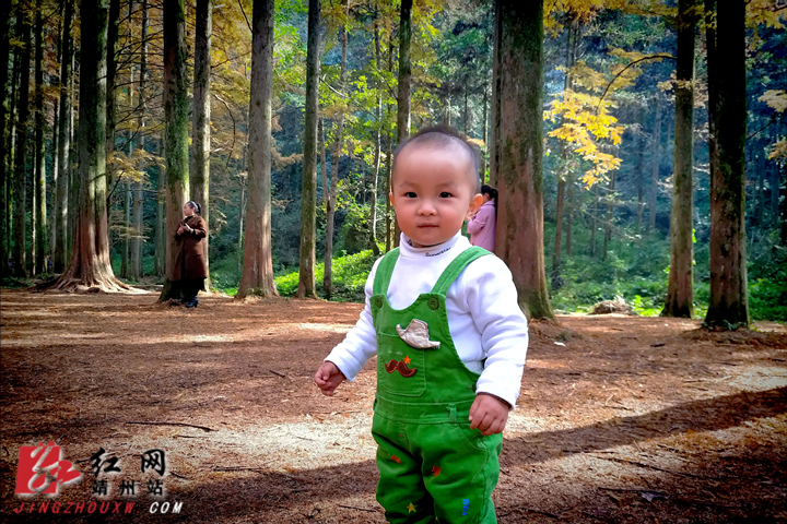 水杉林里也是萌娃们的乐园。 刘杰华 摄