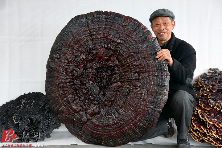 李昌发老人展示他培育的巨型灵芝。 刘杰华 摄