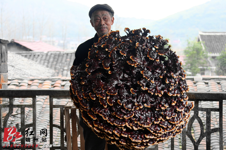 靖州新闻网·红网靖州站12月4日讯(分站记者 刘杰华)2018年12月4日,靖州苗族侗族自治县藕团乡藕团村,在当地有“灵芝艺术奇人”之称的李昌发老人在他的工作室小院内,向人们展示他培育的巨型灵芝。经测量,该灵芝干重达4.2公斤,直径有104厘米,比一面雨伞还要大。