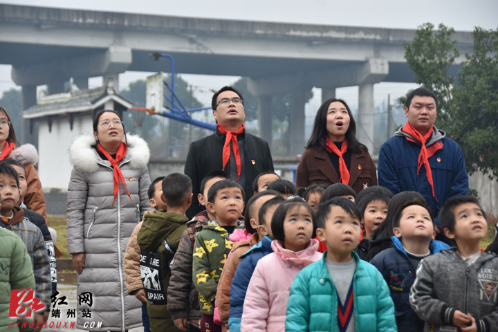 一大早,“爸爸妈妈”团就来到了贯堡渡小学,和同学们一起升国旗、唱国歌。