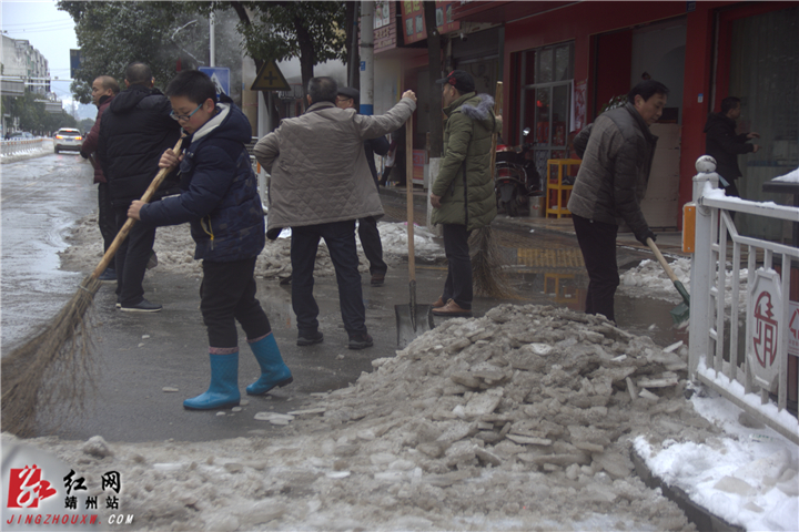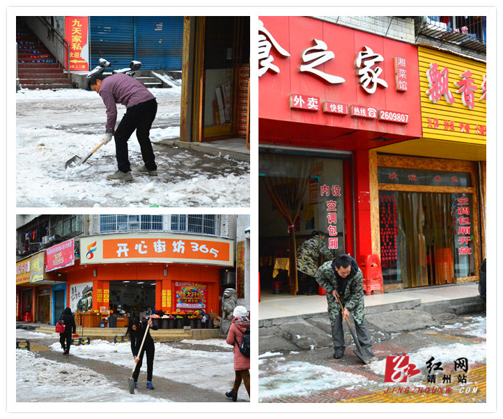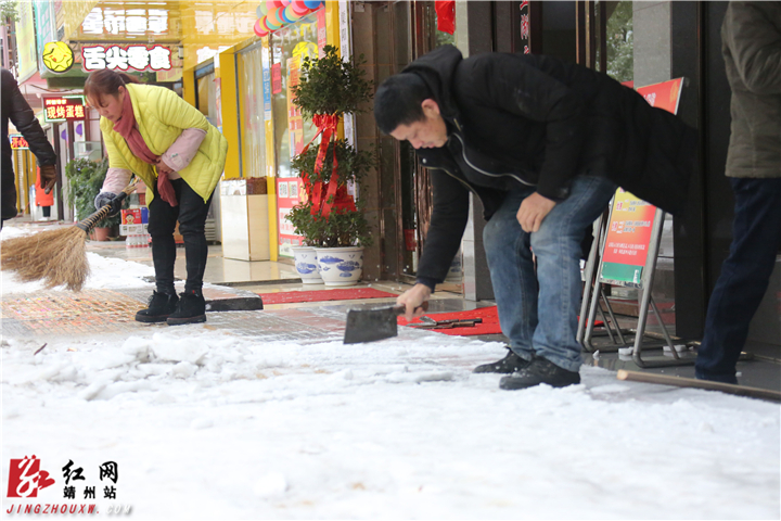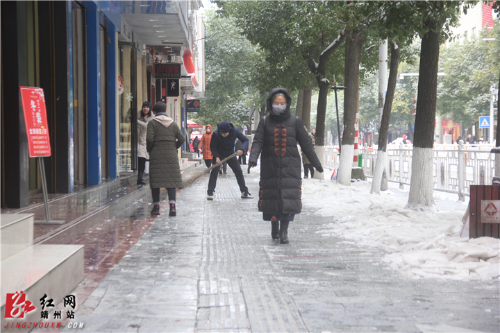 靖宝市场商铺员工自发清扫冰雪 陈俊名 摄