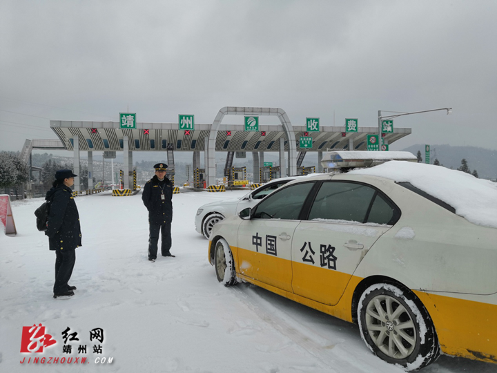 30日,靖州县运管所工作人员在靖州高速公路出入口进行巡查