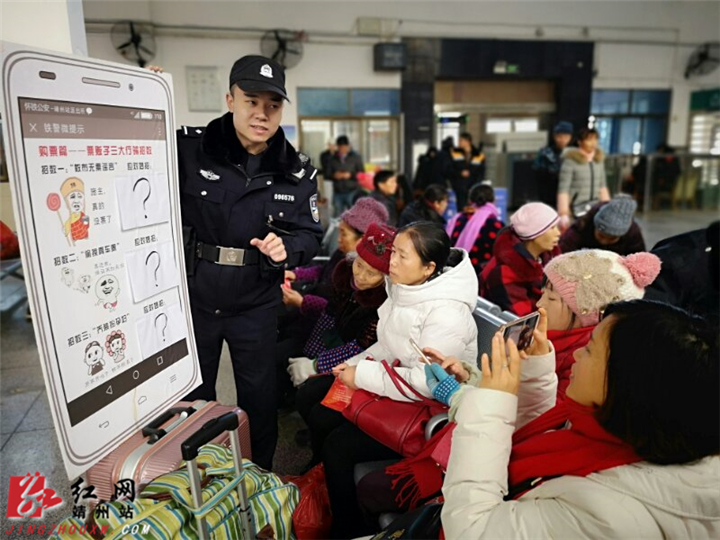 每年的春运是铁路客流最多、运输任务最繁重,也是广大旅客出行安全尤其不可忽视的环节。为了确保广大旅客春运期间的旅途平安,靖州铁路民警提前部署,在加强旅客乘降秩序维护的同时,组织民警走进车站候车室,充分运用旅途安全宣传展板和模拟手机银屏画面等,面对面地向旅客群众宣传和讲解防盗、防骗的旅途安全知识,以增强人们的自防意识。