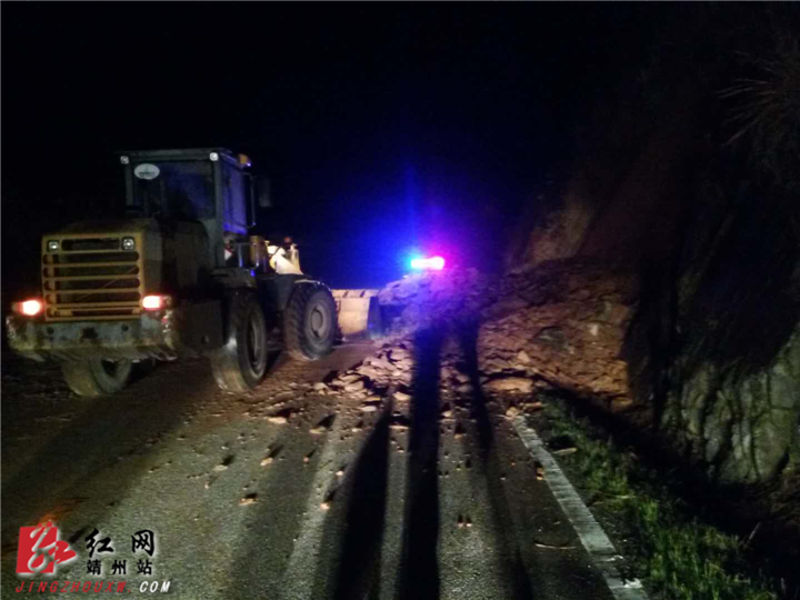 靖州新闻网·红网靖州站1月10日讯(通讯员 石杨 杨双宁 吴玉群)1月10日晚8时许,靖州县公路管理局接到寨牙乡政府报案,国道G356线K1589+129处寨牙乡磨石路段因连日来的暴雨导致山体巨石滚落,造成公路交通中断。