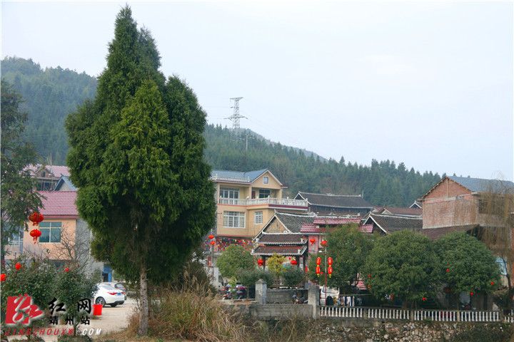 靖州新闻网·红网靖州站2月7日讯(分站记者 易子明 通讯员 王璨)2月6日,走进靖州渠阳镇的林源村,放眼望去,只见小桥流水,亭台阁楼,一排排农家木屋,鳞次栉比,错落有致;一处院落的灰色围墙外,几棵高大的古树倒映在路边的池塘,一条整洁的青石板路从村子大门向村内延伸而去,整个村庄古色古香。