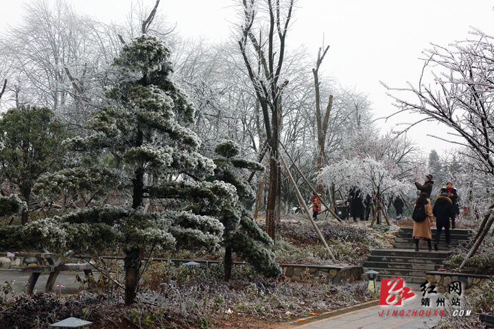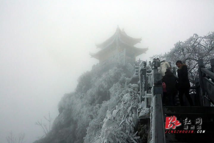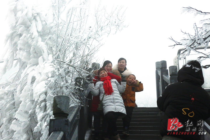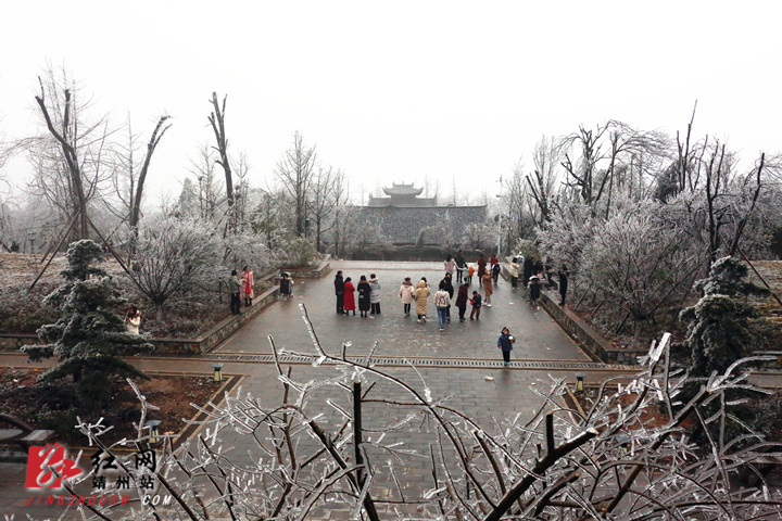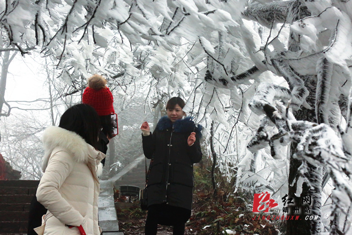 飞山雾凇美景,引来游客络绎不绝。 何嫘 摄