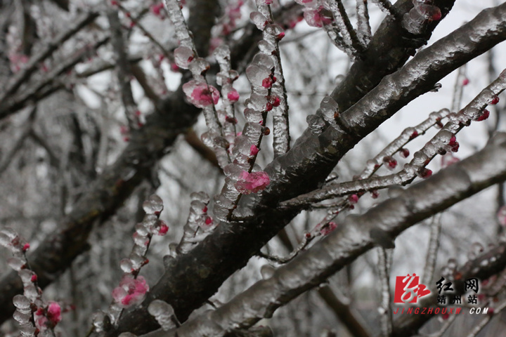 晶莹剔透的冰凝固了花的美。 何嫘 摄