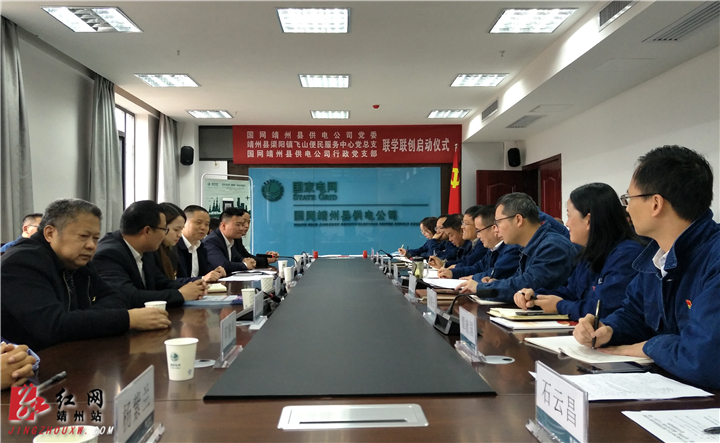 靖州新闻网.红网靖州站讯4月12日讯(通讯员 石云昌)为深入贯彻习近平新时代中国特色社会主义思想和党的十九大精神,认真落实新时代党的建设总要求,践行人民电业为人民的企业宗旨,实现“领航新时代服务心连心”,建设和谐新社区,共创社会责任新作为。4月11日,国网靖州县供电公司党委联合所属行政党支部与靖州县渠阳镇飞山便民服务中心党总支启动联学联创并开展主题党日,双方党委书记、党委委员、支部书记、党员共计30人参加此次活动。