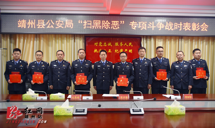 靖州新闻网·红网靖州站4月12日讯(分站记者 周悦伊 通讯员 赵浩仪)4月12日,靖州公安举行“扫黑除恶”专项斗争战时表彰会,颁发2019年“扫黑除恶”战时表彰第一份嘉奖令。县人民政府副县长、公安局长陈方海参加表彰会。